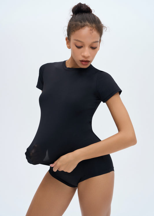 LONG SLEEVE FITTED T-SHIRT - BLACK