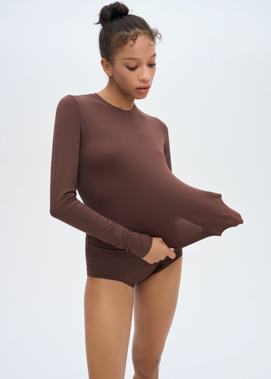 SLEEVELESS HIGH NECK BODYSUIT - BROWN
